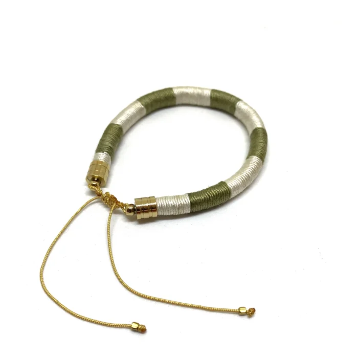 It is produced with silk threads dyed with natural dyes, cotton ropes and gold-plated brass accessories.