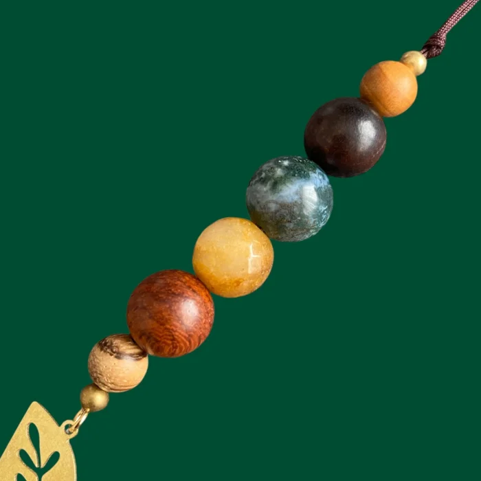 Green-Yellow: Forest Nightingale // Sandalwood, Indian Agate, Sun Jade Quartz