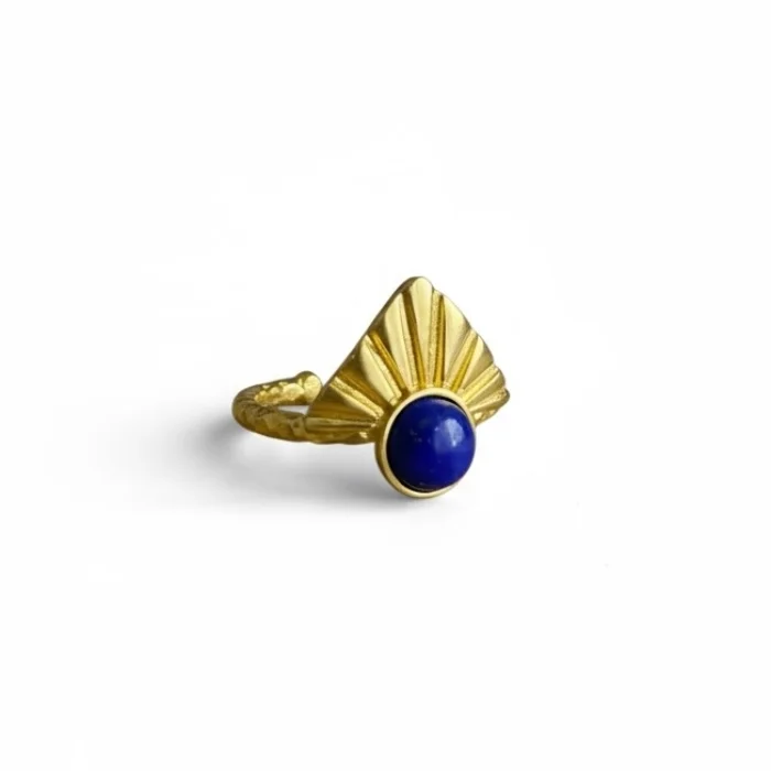 It is made of natural stone and brass. Since it is adjustable, it is compatible with all fingers. Due to the 100% natural materials, there may be slight variations in color and pattern.