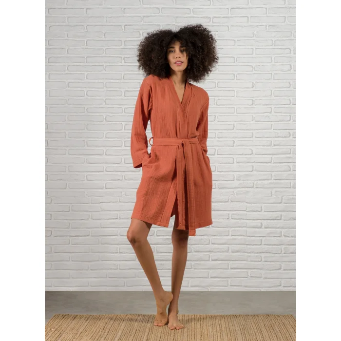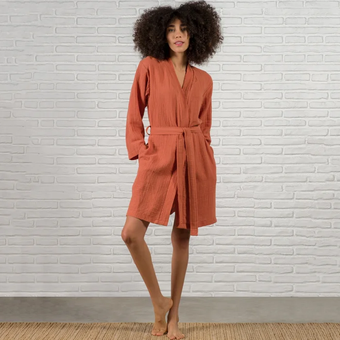 Muslin Bathrobe is the symbol of comfort and peace after bathing with its soft texture and elegant design. The 100% cotton muslin fabric gently hugs your skin, and its light and breathable structure increases the comfort of every moment. With its unique comfort, it completes the peace in your home as a piece that will surround you at any time of the day. This bathrobe, which is both practical and stylish, accompanies your most special moments with its naturalness and elegance.