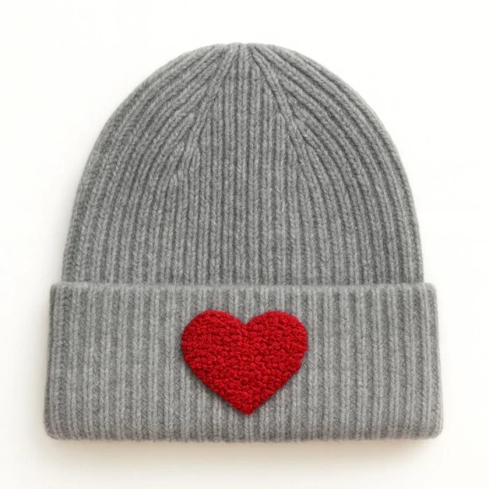 Product: Gray Wool Beanie Red Heart Punch-embroidery Detailed Gift