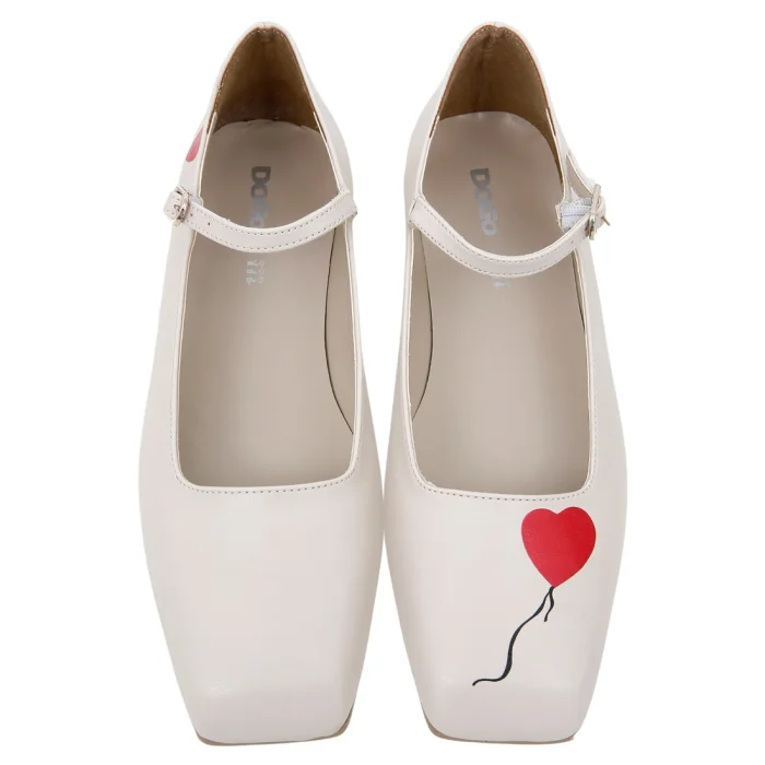 Product: Women Vegan Leather Beige Ballerinas - Heart Of The Balloon Design