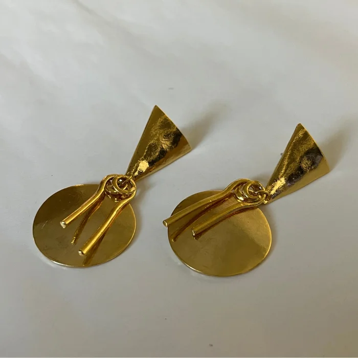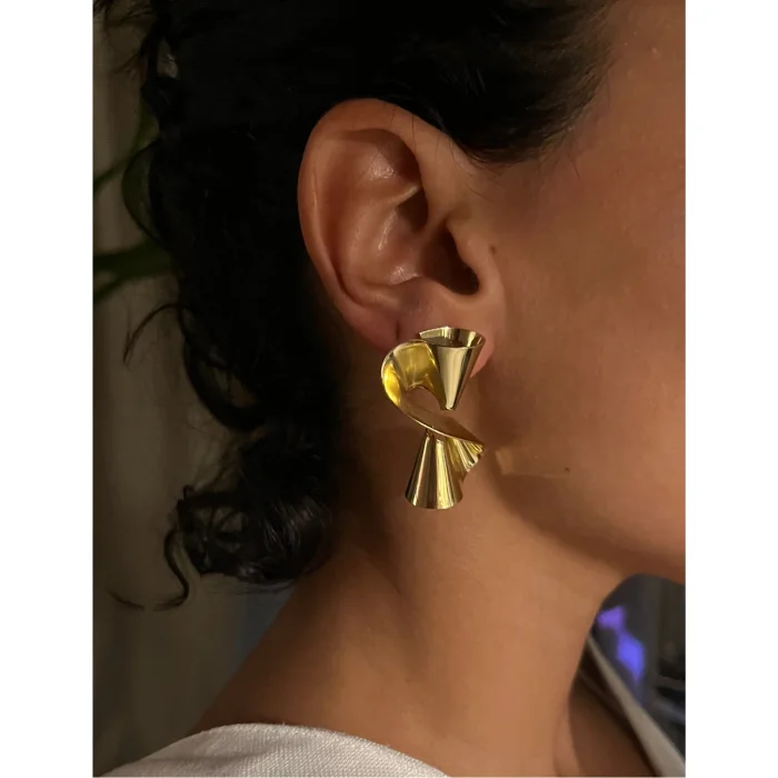 The nail of the earring that enters the ear is steel, and the rest of the form is zamak and gold-plated.