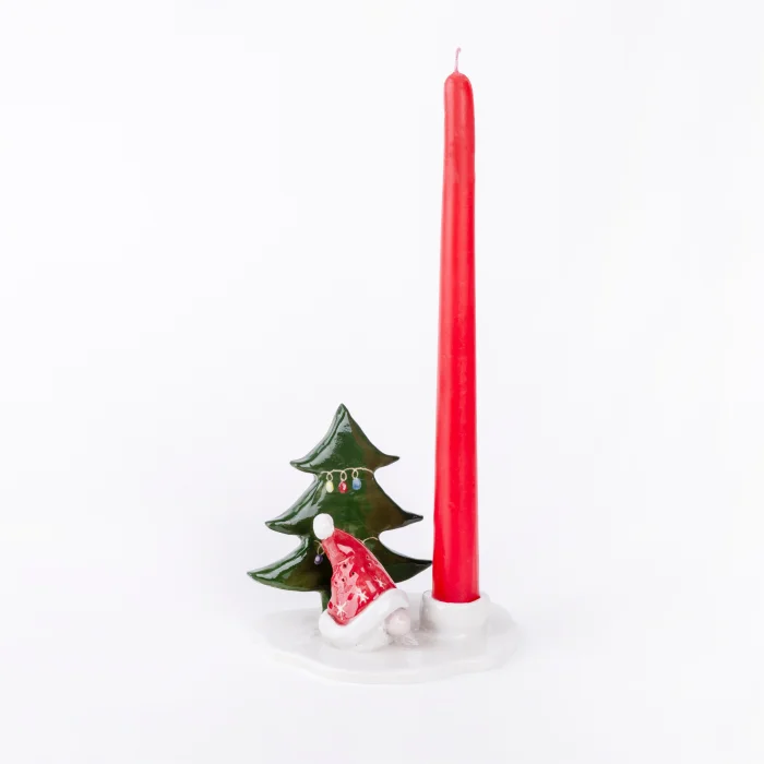 Product: Santa-stoneware Ceramic Christmas Decorated Candle Holder