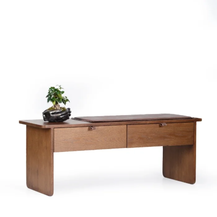 It is a product made of 1st class chestnut wood, complete with faux leather handle and cushion details for low dresser and/or seating purposes, including door entrance, wall bottoms, bed end, headboard and dressing room. It provides convenience to the user in every area with its cushioned and non-cushioned sales option. It is made of artificial leather and 1st class chestnut wood with high quality organic oil applied. Given the naturalness of the tree, each product will offer different patterns and textures. The cushion is included in the product.