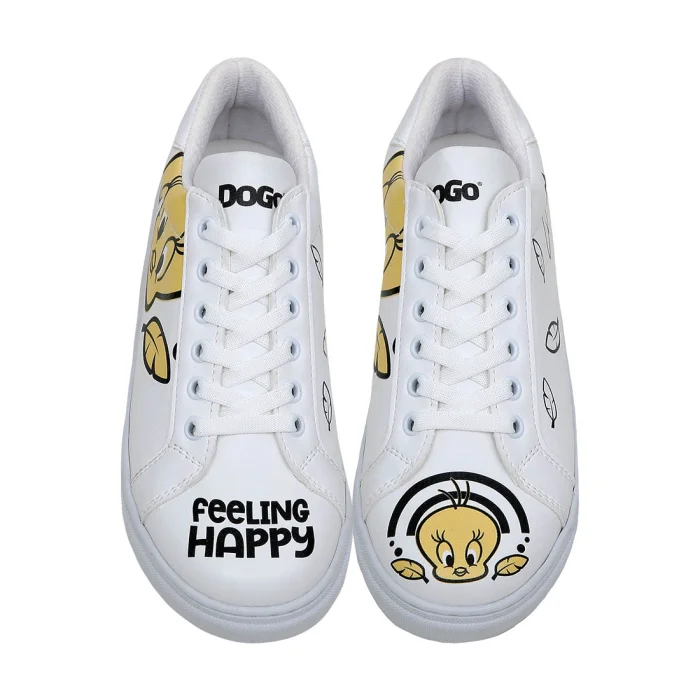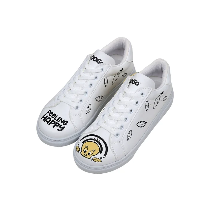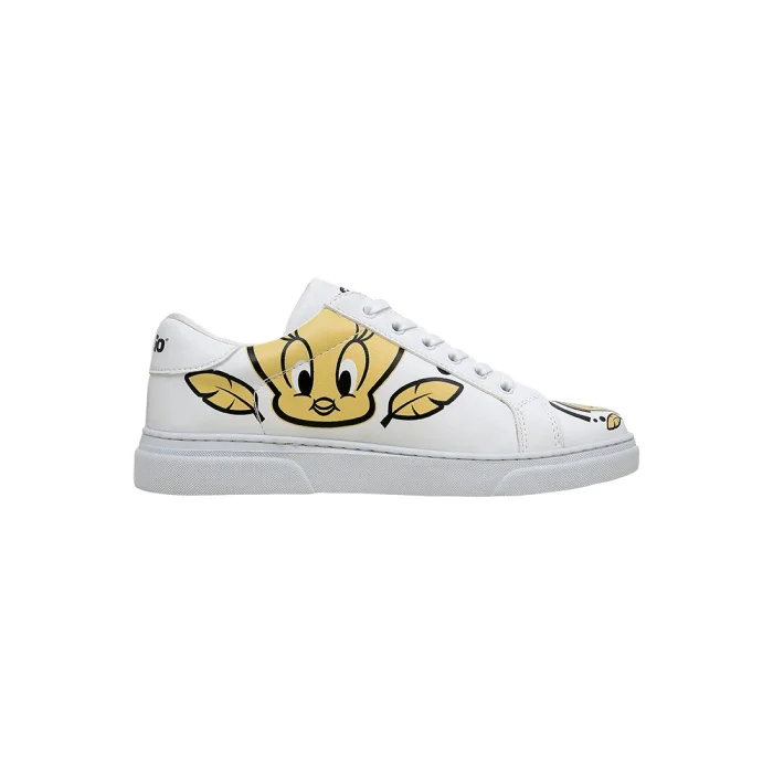 Are you looking for a sneaker that keeps up with the pace of the day and adds joy and energy to your style? Women's Vegan Leather White Sneakers – Warner Bros Feeling Happy Design makes a difference among comfortable sneaker models. Thanks to its 100% vegan leather and eco-friendly materials, it offers a stylish and conscious choice. This casual design shoe, which provides comfort all day long with its light and comfortable structure; In the city, on the street or on vacation, it blends perfectly with every combination. You can choose it for yourself or make an energetic surprise for your loved ones as a gift shoe!