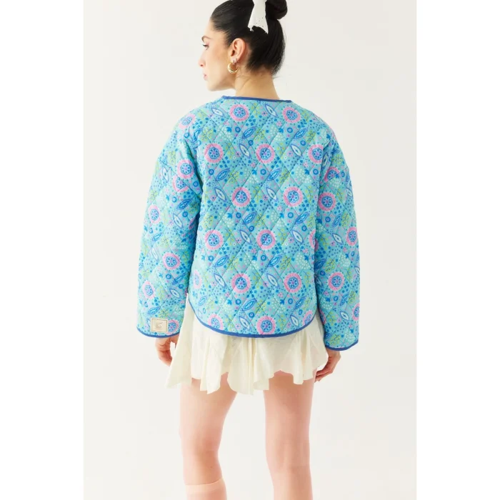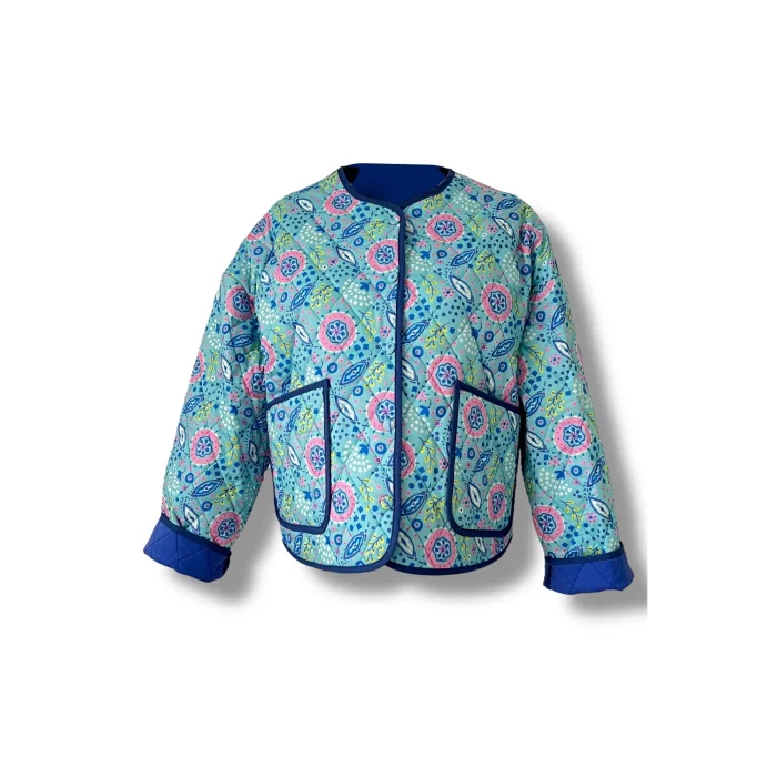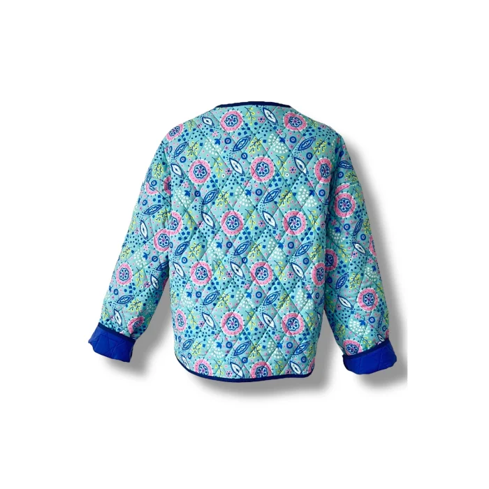 Crew neck, long sleeves, welt, snap closure covered with own fabric Cold