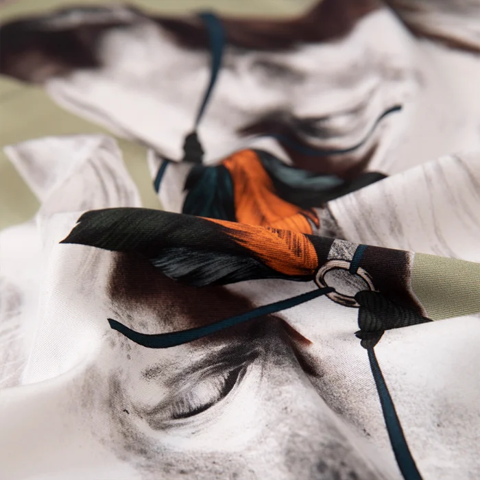 One of a kind artistical hand drawn illustrations are created by classical charcoal & pencil hand drawing technique. All designs are valuable as an art piece and they transform into exclusively printed, multifunctional, unique pure silk scarves, shawls & wraps.. The edge finishes of luxurious & timeless Lumoths art scarves, shawls & wraps are carefully hand-stitched by craftsmen.