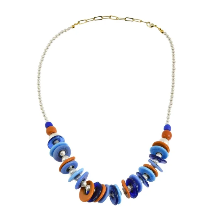 Brass Necklace | Pearl & Colored Glass