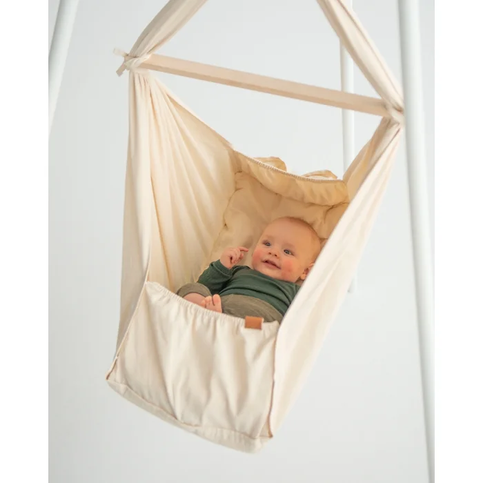 The baby hammock is soft and comfortable and is made of 100% organic cotton. It