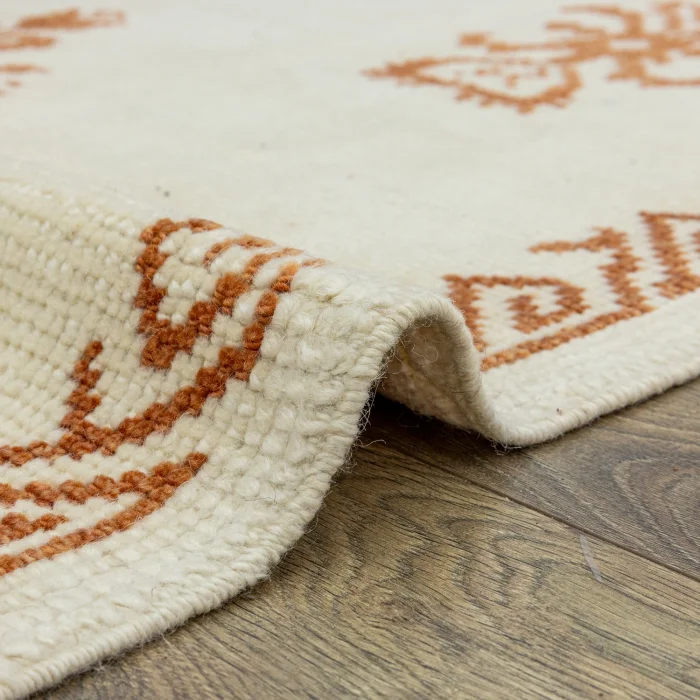 With their flamboyant and aesthetic designs, our Soho Antiq carpet models will add a new atmosphere to your living space! Our long-lasting carpet model consists entirely of wool and is woven with a special hand weaving technique. This carpet, which we produce with the skills that make the carpet model special and ensure that it maintains its quality over the years, has a thickness of 1 to 3 cm and its length is 122 x 183 cm. The main color of the carpet you choose among the carpet models with many color options is cream. In addition, other colors found in carpet design are shades of orange. Soho Antiq features carpets with cultural and traditional features. This carpet model, which has come from the past to the present, bears traces of Anatolian history and has cultural colors and touches, especially from the Uşak region. It is possible to see all these traditional touches in the local butler carpet pattern on the carpet.