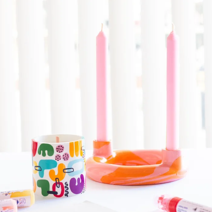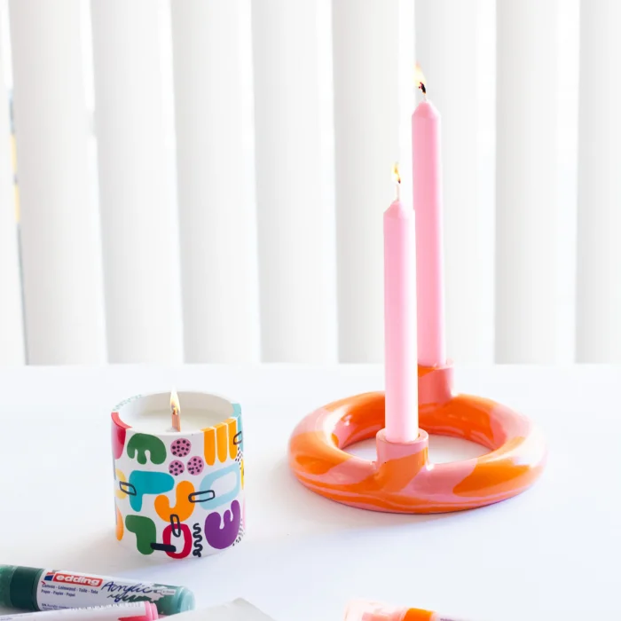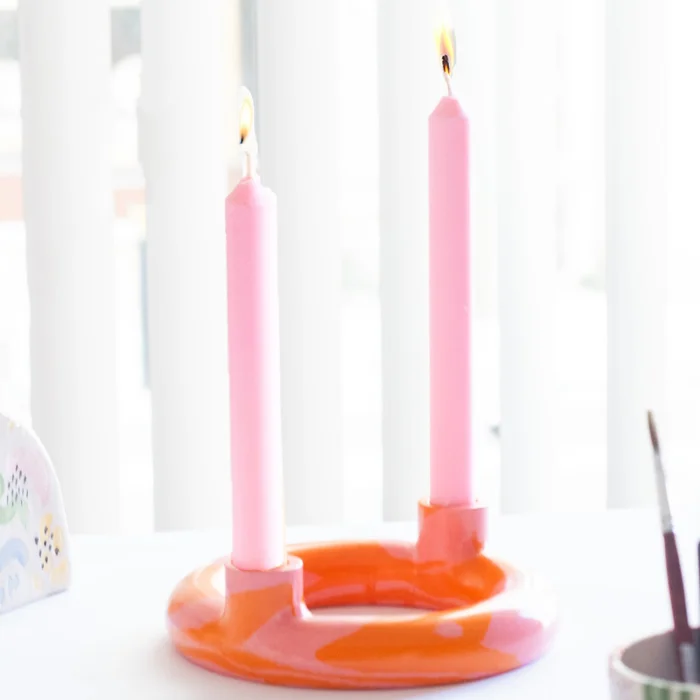 Light Up Your Home with Colors: Jesmonite Circle Candlestick!