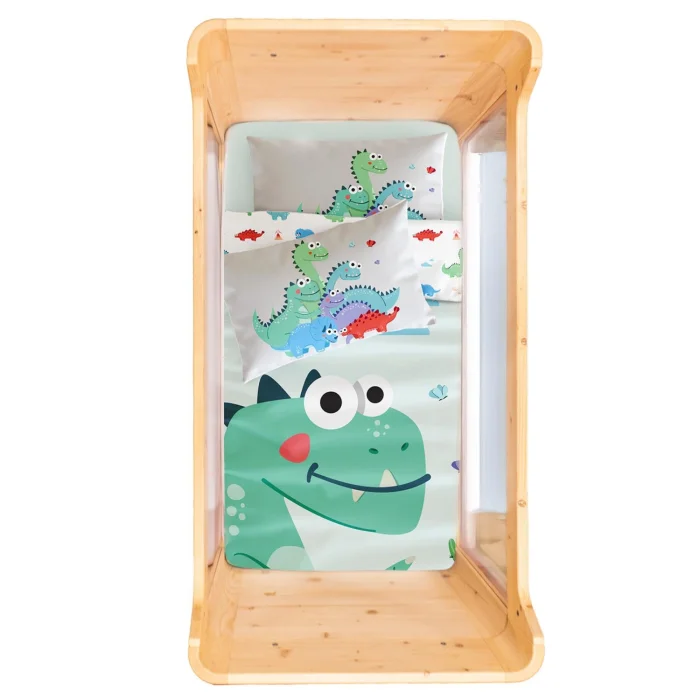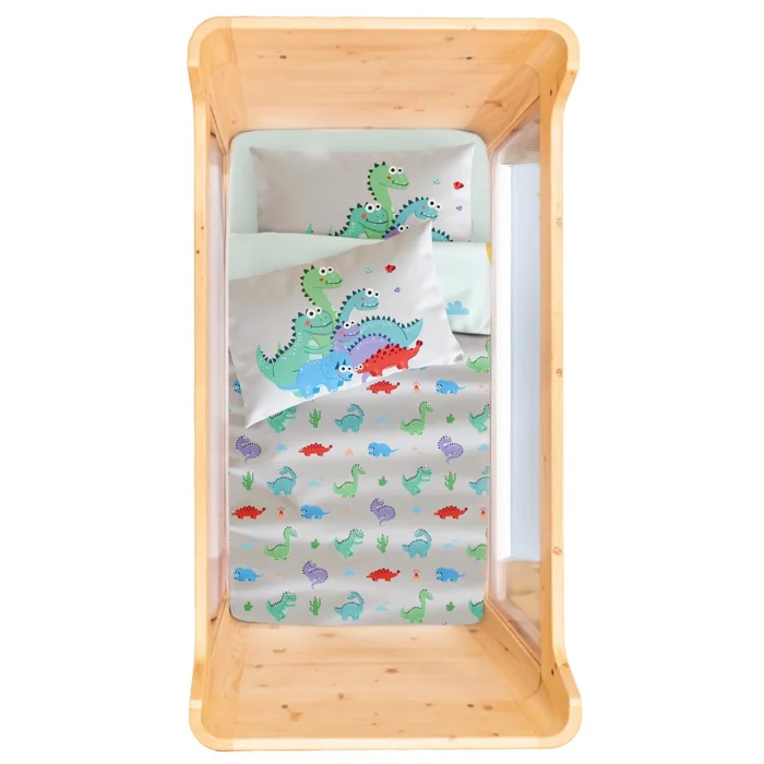 Product: Dinotopia Double-sided Cotton Satin Multicolor Baby Duvet Cover Set 100x150 Cm
