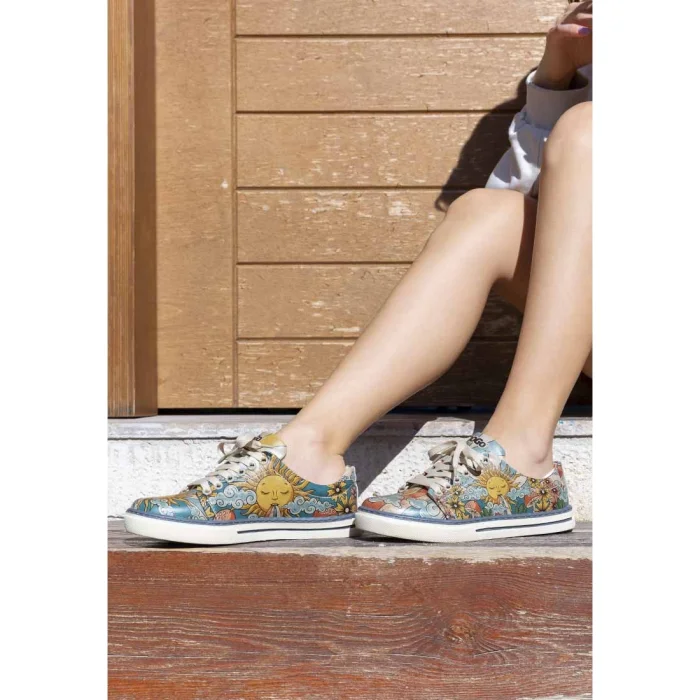 Product: Women Vegan Leather Multicolor Sneakers - The Sun Never Goes Down Design