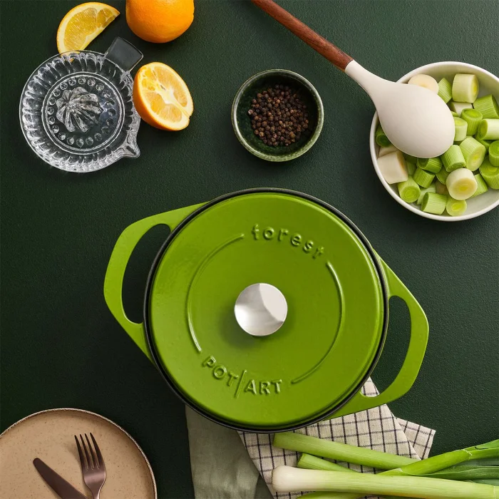 Cast iron products, whose thickness has been thinned with the latest technology casting methods, have been lightened thanks to their innovative design. The handles are designed wide in order to provide ease of use to the users. 3 layers of enamel used in the coating of cast iron products; It is the only 100% healthy coating type that is antibacterial, has high acid and corrosion resistance, and does not contain carcinogenic additives. Thanks to the perfect heat balance, cast iron pots and pans distribute the heat evenly and preserve the water vapor formed during cooking for a long time. The water vapor formed condenses thanks to the inner surface of the lid with functional lines and turns into water droplets again and returns to the dishes with its flavor. Meals do not lose minerals, vitamins and fiber. Pot Art cast iron pans are 100% recyclable. Thanks to its durable structure, it is long-lasting. It saves energy by conserving heat.
