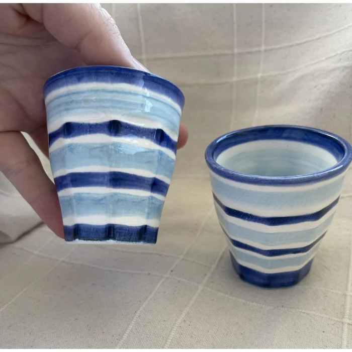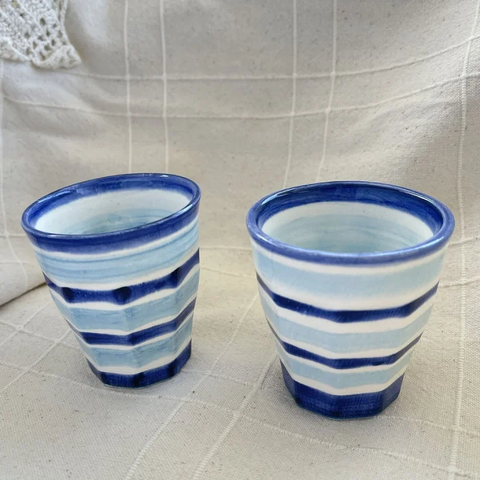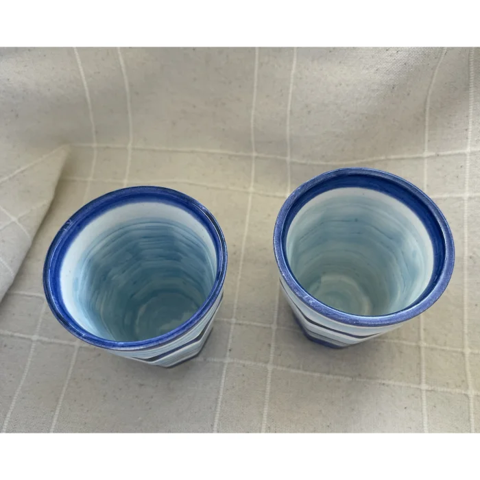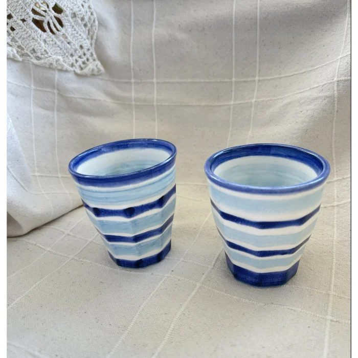 Blue Striped Handmade Double Small Turkish Coffee Cup