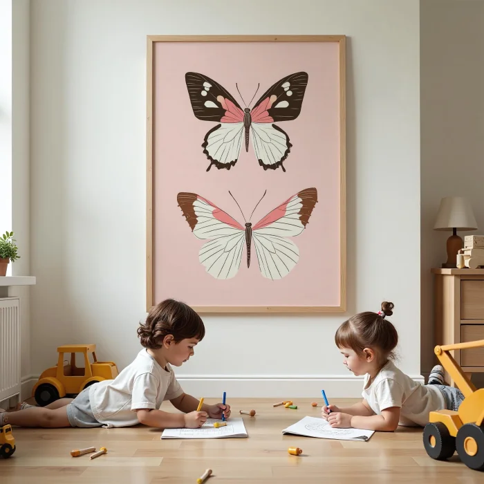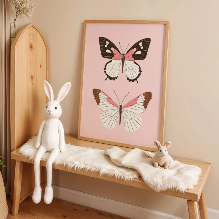 Product: Butterflyler - Pink Background Children's Room Wooden Framed Wall Art