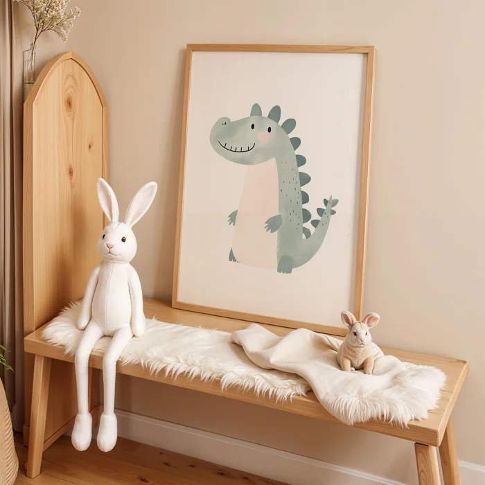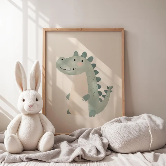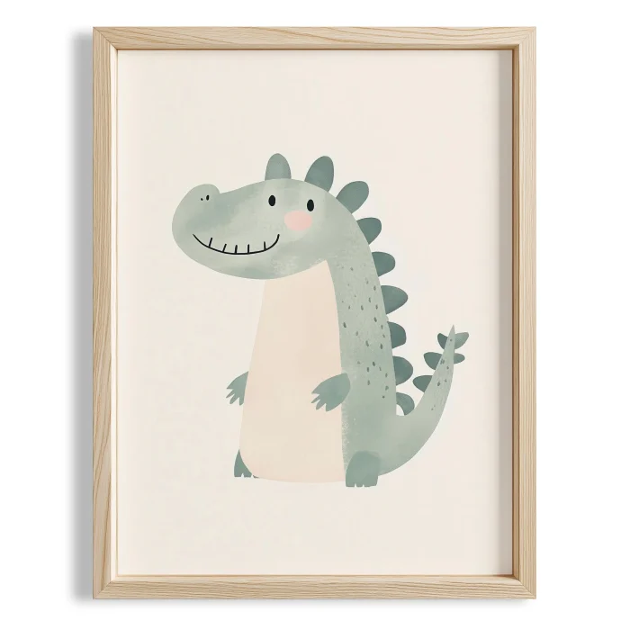 Product: Cute Dinozor - White Background Children's Room Wooden Framed Wall Art