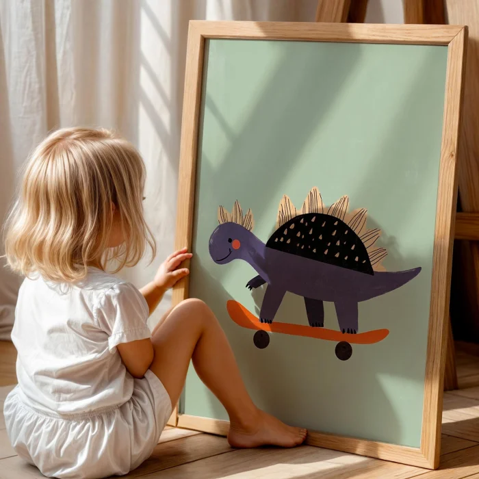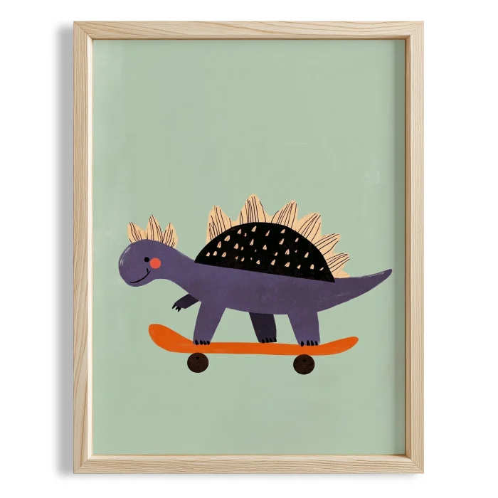 Product: Dinosaur Riding A Scooter -themed With Green Background Kids' Room Wooden Wall Art Ii
