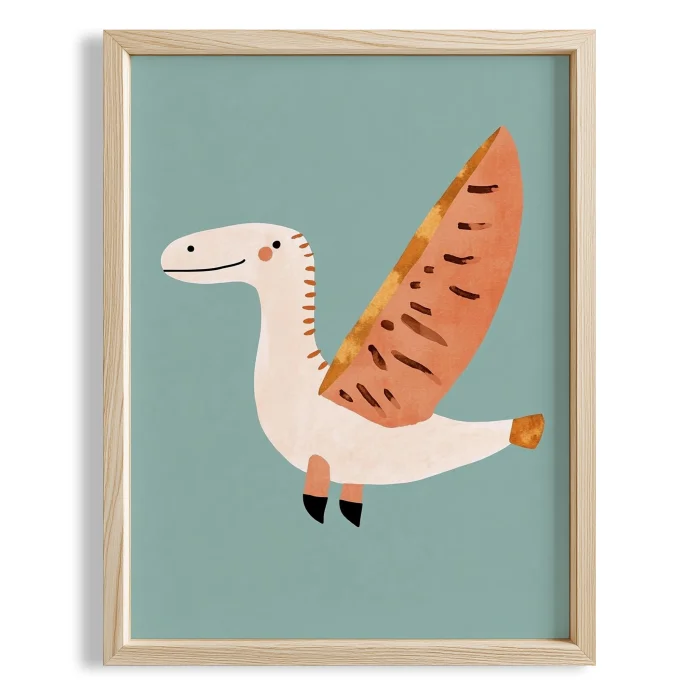 Product: Flying Dinosaur-themed With Blue Background Kids' Room Wooden Wall Art