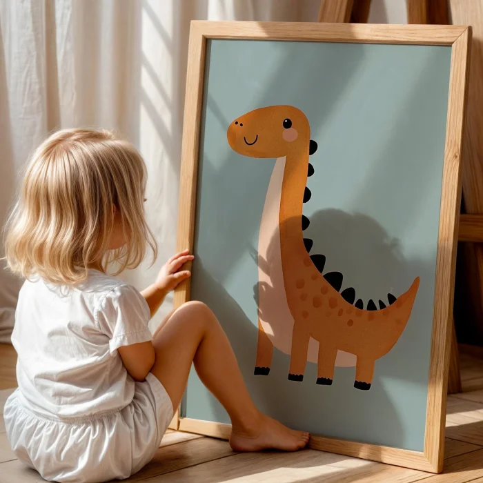 Product: Gülen Dinosaur-themed With Blue Background Kids' Room Wooden Wall Art