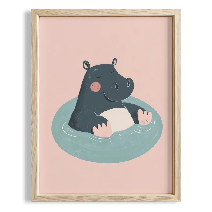 Swimmer Gergedan - Pink Background Children's Room Wooden Framed Wall Art