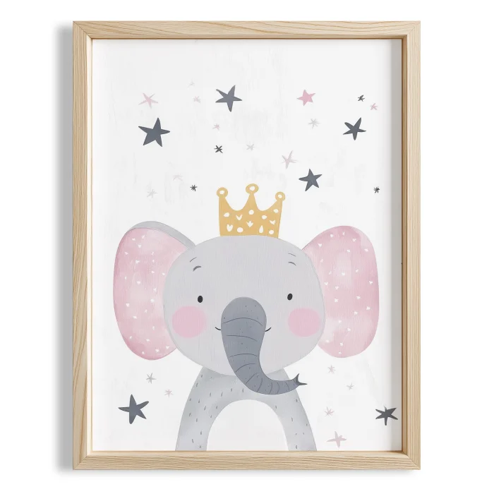 Taç Takmış Elephant Children's Room Wooden Framed Wall Art