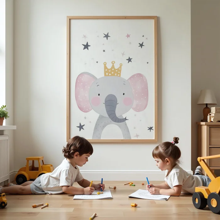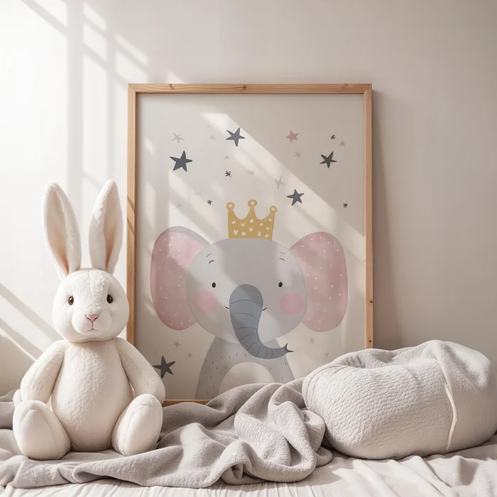 Product: Taç Takmış Elephant Children's Room Wooden Framed Wall Art