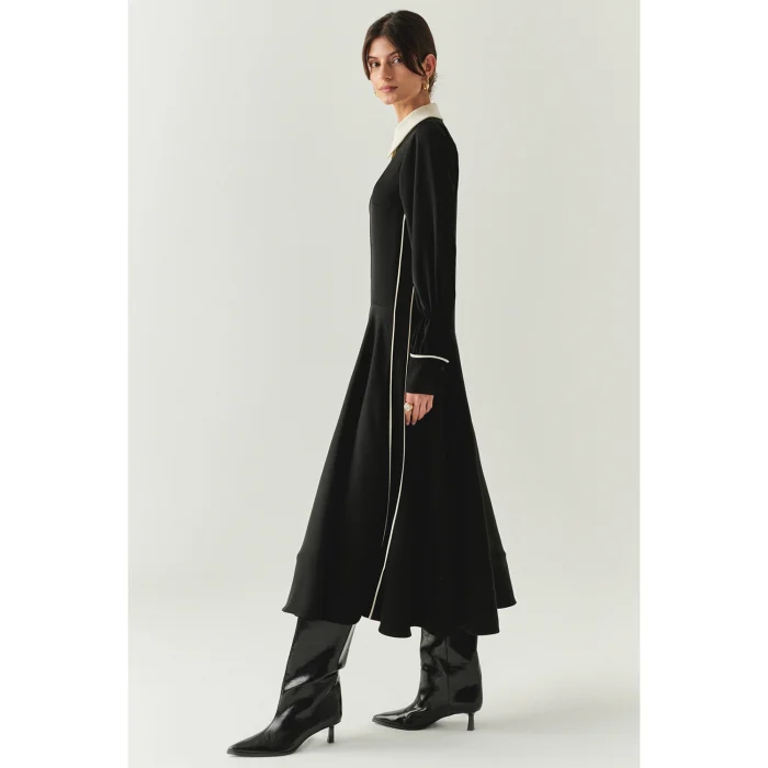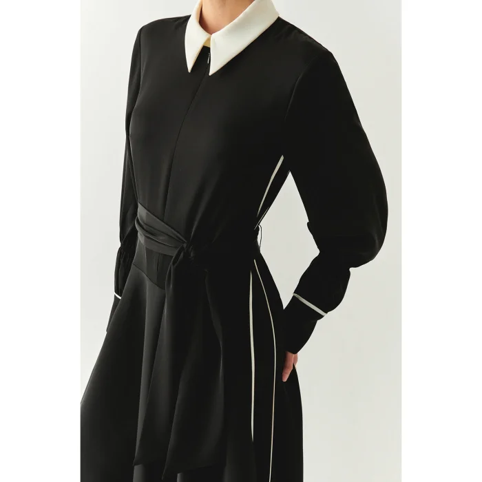 Product: Long Sleeve Belted Low Waist Regular Midi Dress