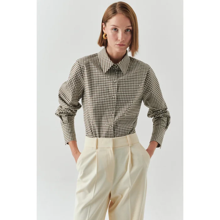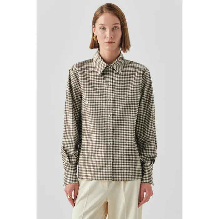 Long Sleeve Regular Plaid Shirt With Stone Detail