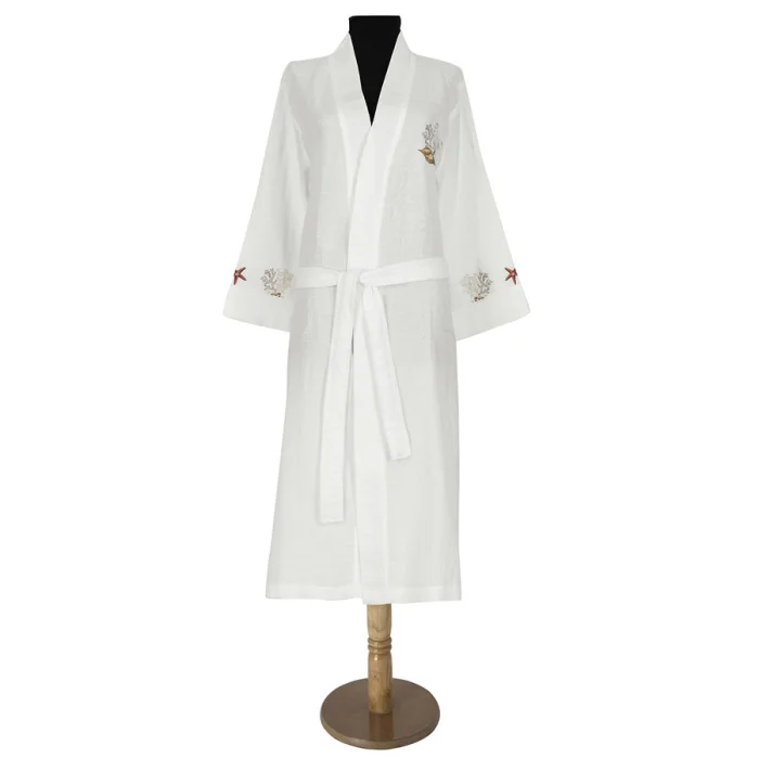 Cowrie Muslin Bathrobe is made of muslin fabric.