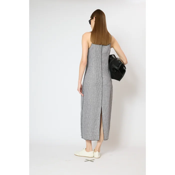 Fabric: Linen-cotton blend main fabric Volume: Flat form, tank top neck, slit at the back Length: Maxi Detail: Baby overlocks on the edges, cord arch