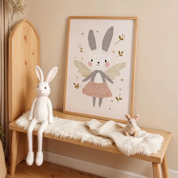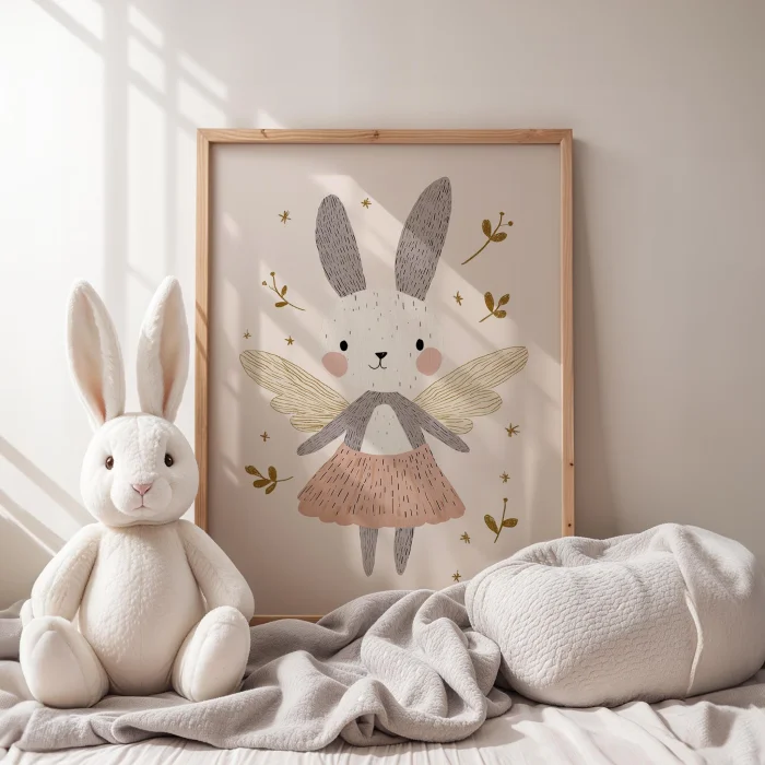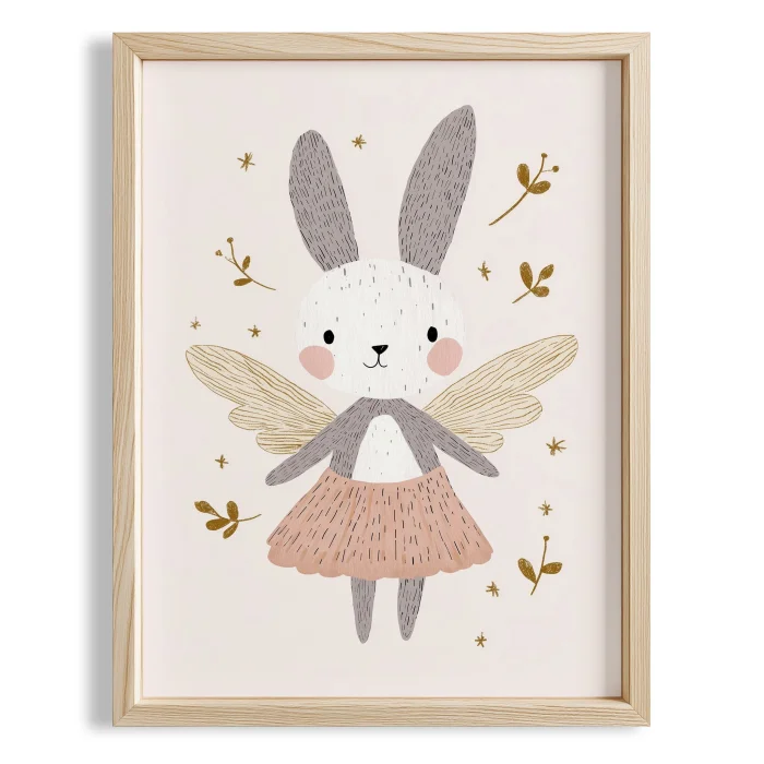 Product: Kanatlı Masalsı Rabbit - Children's Room Wooden Framed Wall Art