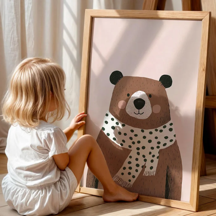 Product: Tatlı Teddy Bear - Boho Girls' Room Wooden Wall Art