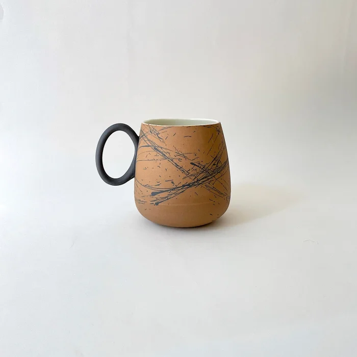 The handmade porcelain mug is manufactured using food-grade glazes.
