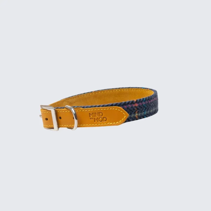 Designed with a special wool fabric in the traditional English style, the Midnight Wool Odyssey neck collar adds a unique touch to your dog's style.