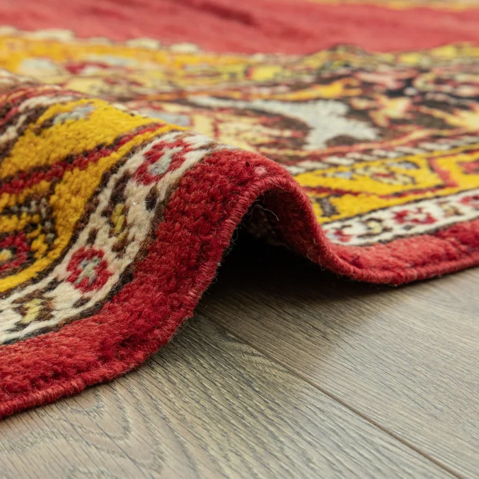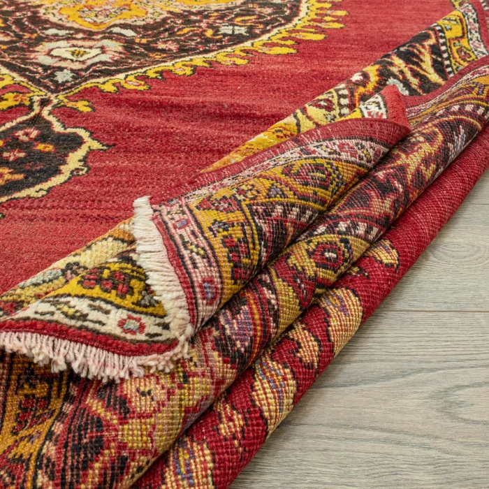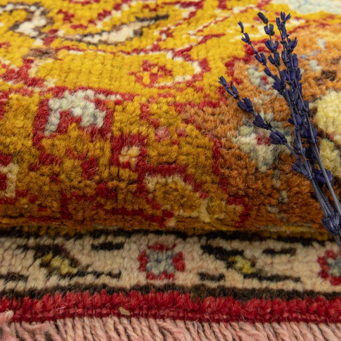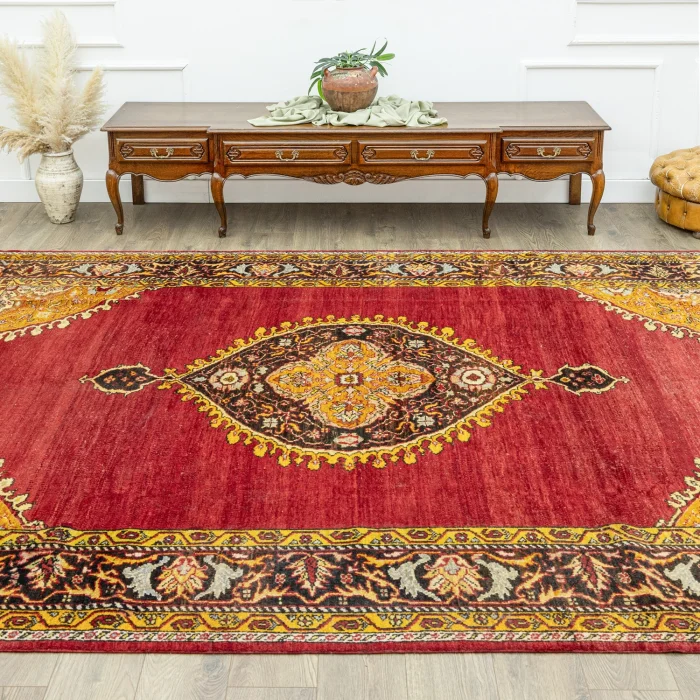 Soho Antiq hand-woven carpets and rugs are designed to breathe into your living spaces. This exquisite hand-woven rug is created by expertly combining carefully selected high-quality wool yarns. Produced using traditional handloom techniques, the carpet is specially designed to add warmth and elegance to your home. The color palette is inspired by the soft tones of nature, and while it draws attention with the harmony of red and yellow colors, it catches harmony with other colors in the carpet. The carpet was carefully woven by experienced handicraftsmen and produced in the 1940s with traditional techniques unique to the Sille region, which adds a cultural depth to the carpet. The size of the carpet is measured as 253 x 354 cm, which allows the carpet to easily adapt to different living spaces. The thickness of the carpet is between 1 - 3 cm. Beyond its aesthetic value, this hand-woven rug stands out when it comes to adding authenticity and a traditional feel to your home.