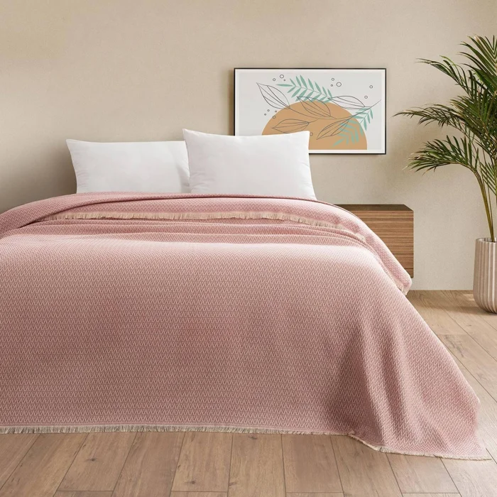 Pera Bedspread - Reflection of Naturalness and Comfort Refresh your bedroom with a modern touch by softening it with natural tones! Soft tones of powder, natural brown and green colors make this bedspread both relaxing and stylish. Minimal zigzag patterns keep the design simple and offer an elegant look. 100% cotton texture wraps you with its softness and offers a comfortable sleep experience. High Quality: Durable and long-lasting cotton construction. Comfort: With its 100% cotton texture, it provides comfort in all seasons. Easy Maintenance: Machine washable, practical use. Product Contents • Bedspread (1 piece) • Size: 200x230 cm (1268 gr) • Material: 100% Cotton • Color Options: Green, Natural, Brown, Powder Use and Maintenance Information • Washable at 30 °C. • It can be thrown into the dryer at low speed. • Ironing can be done at low temperatures. • Do not use bleach. Our product is OEKO-TEX certified. Why Should I Buy Oeko-Tex Certified Products? - Oeko-Tex certified products are products that have successfully passed all tests and approved according to international standards. - It does not contain carcinogenic and allergenic materials. It does not irritate the skin and does not harm human health.