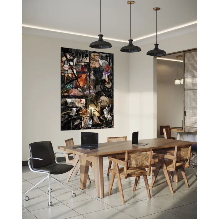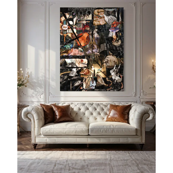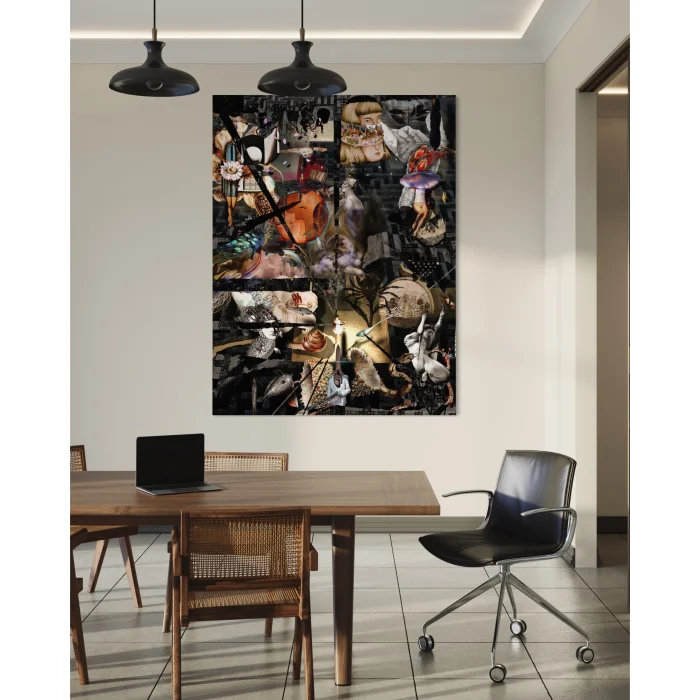 Eudoimoniart's rare work, "Labyrinth," is a digital masterpiece engraved on canvas measuring 120x158. This enormous painting skillfully uses the labyrinth motif to take the viewer on a journey of abstract thought. The innocent child figure at its center follows the traces of the past as it wanders through the inner labyrinth of man, surrounded by memories reflected from the broken mirrors around him. Broken mirrors reflect the complexity of life and the depths of human emotions, providing the viewer with the opportunity to identify with an emotional touch. As a contemporary masterpiece in art history, Labyrinth invites the viewer to a mystical discovery.