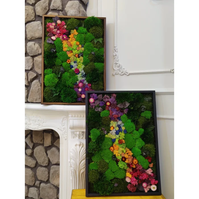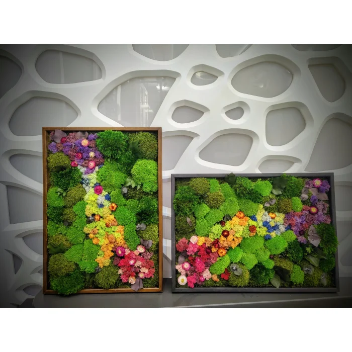 Welcome to Fiplantartworks Please read for detailed information about the products and the work done. Meet our 100% natural products that do not require maintenance in your natural environment. You will love them very much. This unique moss wall art is made from truly preserved moss. It requires no maintenance or even sunlight. A framed mural decorated with white thistles and dried flowers will add a lively color to your space. Researches; Incorporating plants into your space has been shown to reduce stress and anxiety. It will bring peace to your body and promote feelings of happiness. never water the crop This product can be used indoors It can be produced in desired dimensions and dimensions. It is applied to the desired wooden frame and color options are available. Please make a special request for it. Each product is a unique work of art. and it's made just for you. At the same time, the moss art frame has been prepared for you as Personal Gifts. these products bring peace to your environment Living walls are popular, but their maintenance and longevity are rarely viable. Fiplantartworks is a revolution in using 100% real plants naturally preserved with ZERO care! We create sustainable, versatile and beautiful natural arts using a variety of botanical materials. All our preserved plants are non-toxic and environmentally friendly. Handcrafted Plant Paintings® are extremely lightweight and do not require expensive ongoing maintenance – no grow lights, fertilizers or watering required. Hang them on your wall and enjoy.