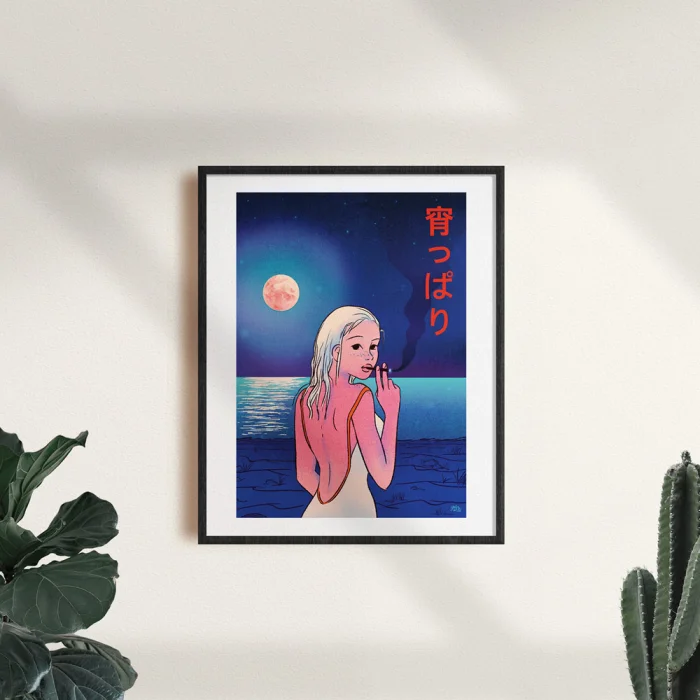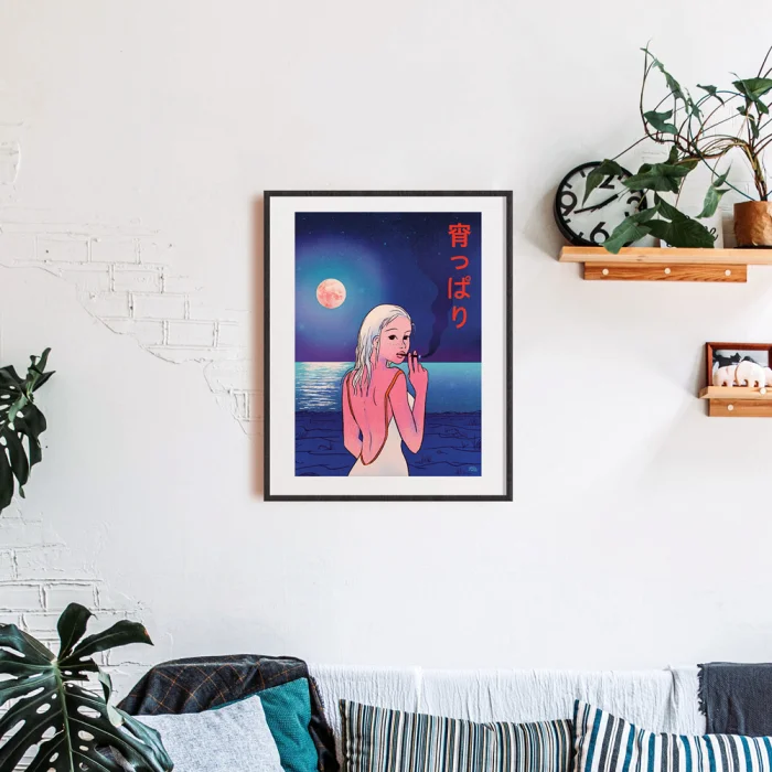 This illustration by Günseli Sepici will be printed on textured, 280gsm, professional paper using archival inks. We print the design with a 2.5cm border for framing and ship it to your address without a frame in sturdy mailing tubes. Stay with love.