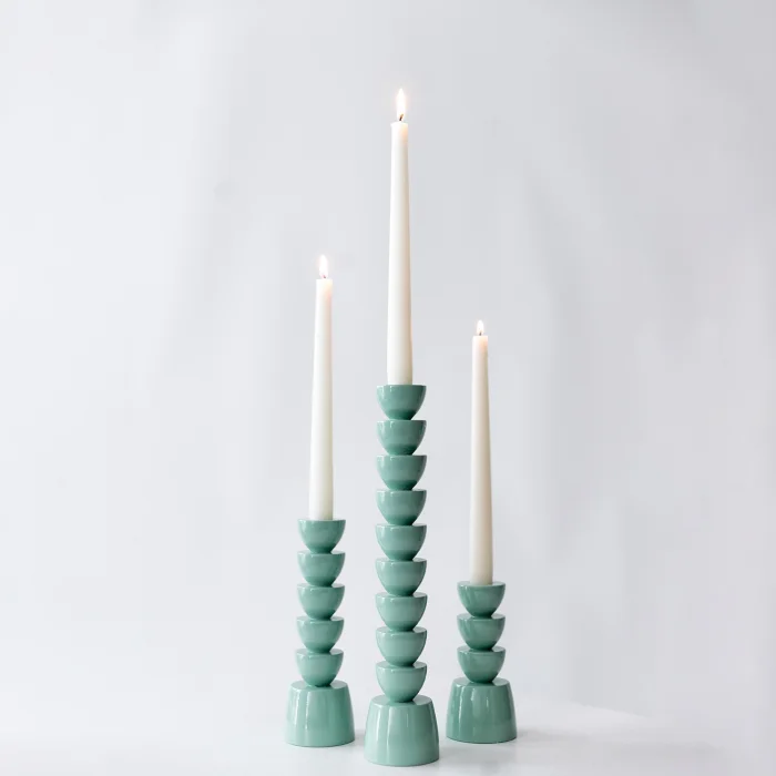 Nova candle holder set is produced entirely by hand using solid wood.