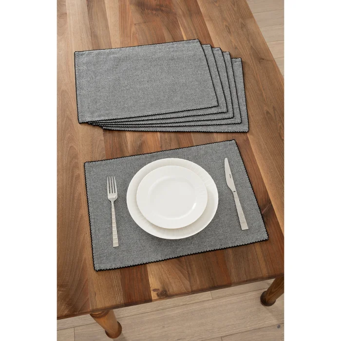 The rectangular 6-piece placemat set with crochet edges is an ideal choice for stylish and tidy tables. With its elegant edge details, it is suitable for both daily use and guest presentations.  It also harmonizes with classic and modern table settings.
