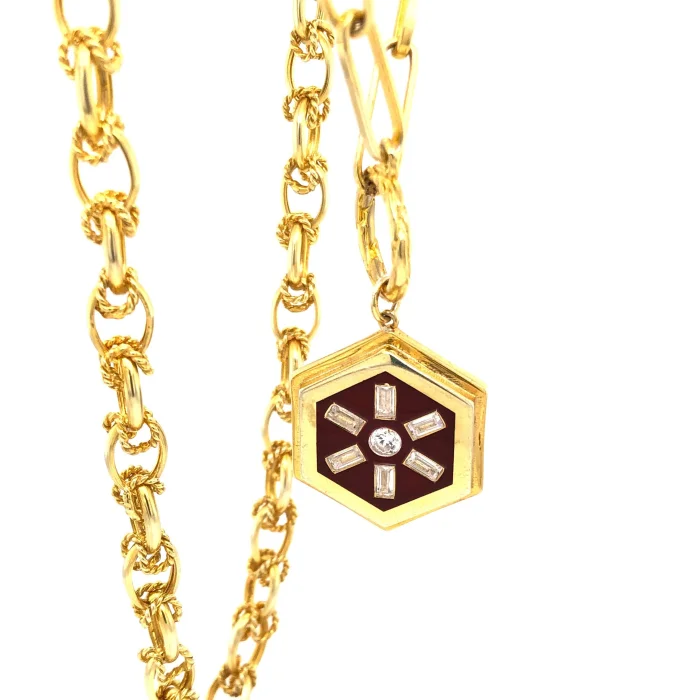 Product: Enamel Baguette Medallion Necklace