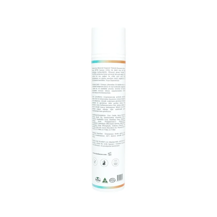 • Protects against rays with wide spectrum UVA/UVB/UVC filters. • Contains 25% Non-nano zinc oxide (Patented formula) •100% organic. • Vegan certified. • It is hypoallergenic. • It provides a protective effect against photoaging with the Vitamin E it contains. • With its dermatologically tested formula, it is compatible with the skin and gives the skin a glow. • Thanks to the herbal extracts such as jojoba and calendula in its content, it strengthens the skin barrier, moisturizes and provides a soothing effect. • It can be used by all skin types, including sensitive skin. • With its natural ingredients, the effectiveness of which has been proven by Australian institutions, it protects your skin and does not harm marine life, it is not tested on animals and is vegan. •Suitable for daily use and provides blue light protection. • Easy to apply and water resistant. • It does not leave an oily feeling and white marks. •Made in Australia. Minela Care Organic Mineral Filter Face and Body Sunscreen SPF 50 110gr Contents: Zinc Oxide, Aqua, Helianthus annuus Seed Oil, Simmondsia chinensis Seed Oil, Glycerin, Candelilla Cera, Xanthan Gum, Polyhydroxystearic Acid, Polyglyceryl-3 Polyricinoleate, Tocopherol, Calendula Officinalis Extract, Maltodextrin, Potassium Cetyl Phosphate, Sodium Chloride, Citrus Paradisi Peel Oil, Cocos Nucifera Oil, Thuja plicata Leaf Extract, CI 77499, CI 77491, CI 77492.