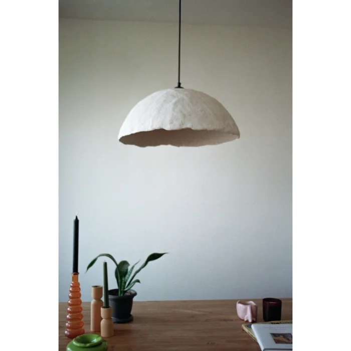 The ORB:I lamp is meticulously handcrafted using recycled paper, egg cartons, natural pigments, and water-based paint. Made with eco-friendly materials, each component offers both durability and lightness. The production process is designed with sustainability in mind and adds an eco-conscious touch to your space.