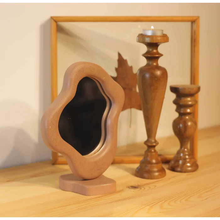 Venus table mirror is made for decorative table top use. The product is polyester-based.