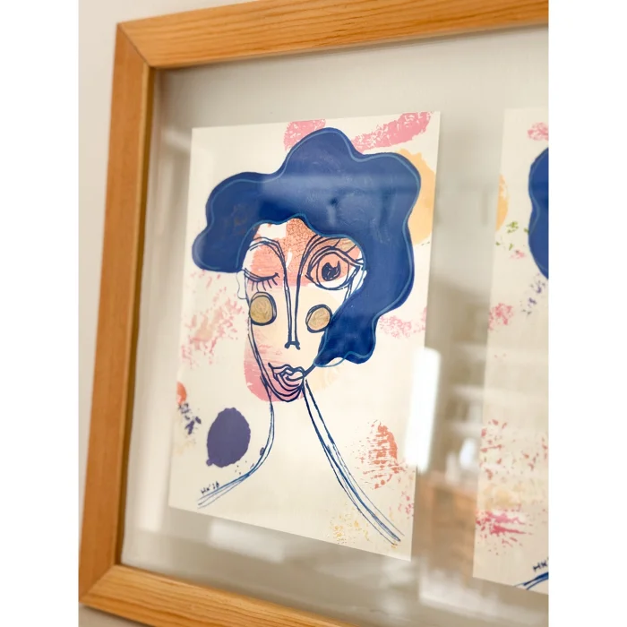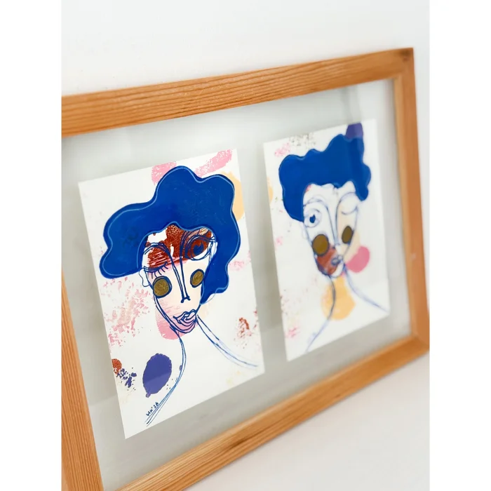 Original, signed, hand made wooden framed image. Since this picture is a hand drawing, there is no exact example.