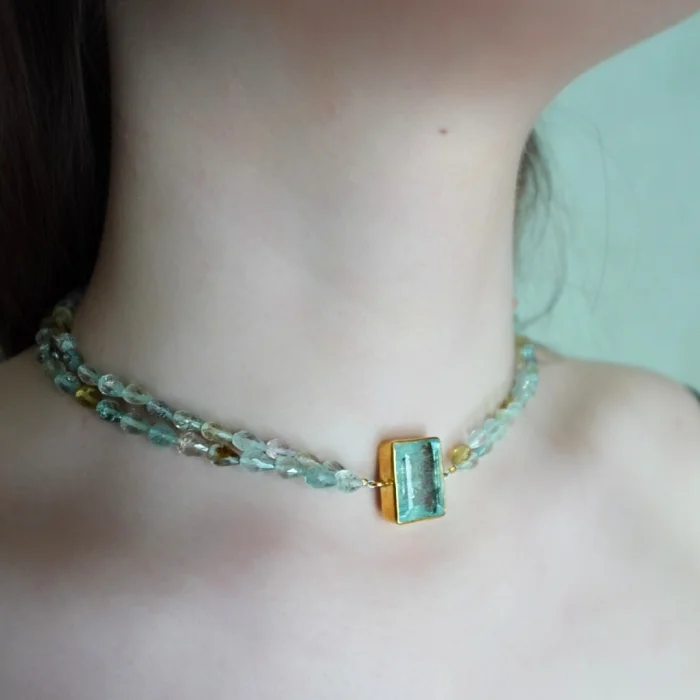 Product: Marina Aquamarine Natural Stone Choker Silver Necklace - Water Element