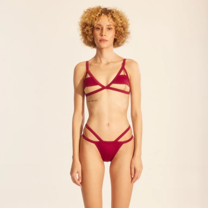 Sole Bikini Top stands out with its spaghetti strap triangle cut and mesh details, creating a sexy design. This top allows you to showcase elegance and confidence on the beaches.